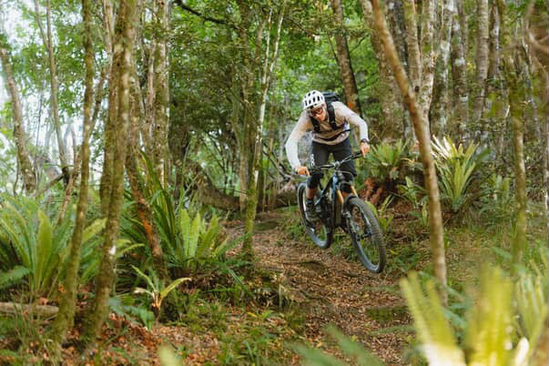 This Velduro Rogue is going to spend most of its life in Whakarewarewa Forest and going out on backcountry missions because that’s where it shines. Steep tech, fast flow, long days, gnarly climbs, it handles it all.